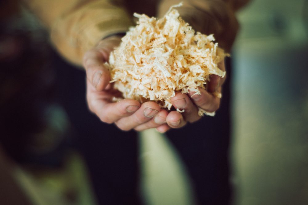 「やっぱりずっと同じ場所で同じことをやっていても、なかなか新しい発想は生まれないんですよ。今、お金を払って鉋くずを引き取ってもらっているんですけど、お花屋さんなどに持っていくと喜んでくれるんですよ。ヒノキのいい香りがするので、そこからハロウィン用のリースが生まれたり……こんな使われ方もするんだって新鮮に感じました。いろいろな方とお話しすると、何がどう転ぶかわからないものだなって。ガラス屋さんは、鉋くずを緩衝材にしたらいいんじゃないかって言ってくれて、今度持っていくことになっているんですよ。もともと捨てていたものなのに、人気沸騰なんです(笑)。本当にアイデアと行動力で新しい何かが生まれるんだなって実感しています」