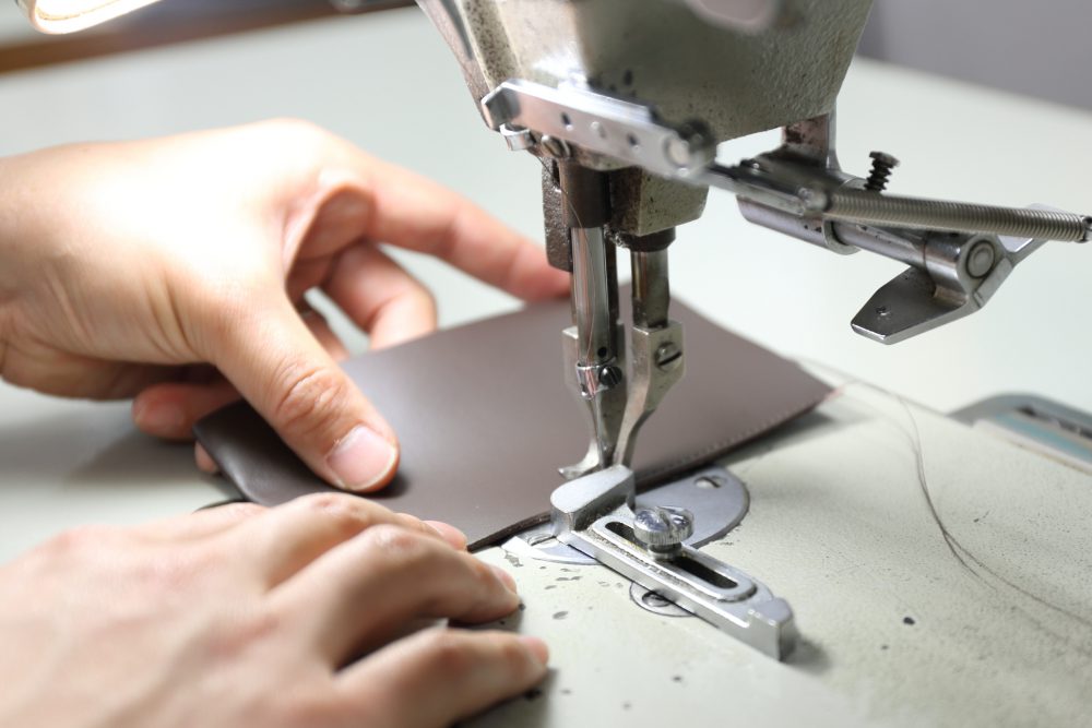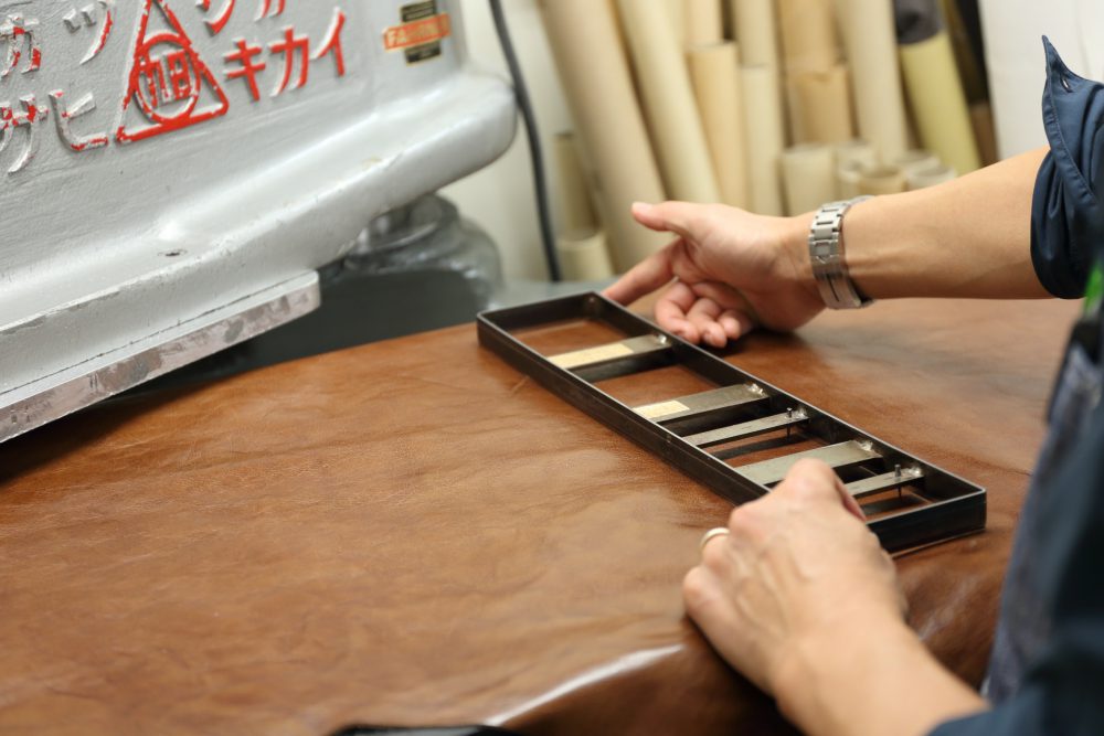 工房にはクリッカーと呼ばれる革の型抜き機を2台備え、多種多様なミシンや革漉き機など、充実した設備を備えている。そこで生地の切り出しから縫製まで、熟練職人が一気通貫して手掛けることで、品質に優れた製品を生み出している。