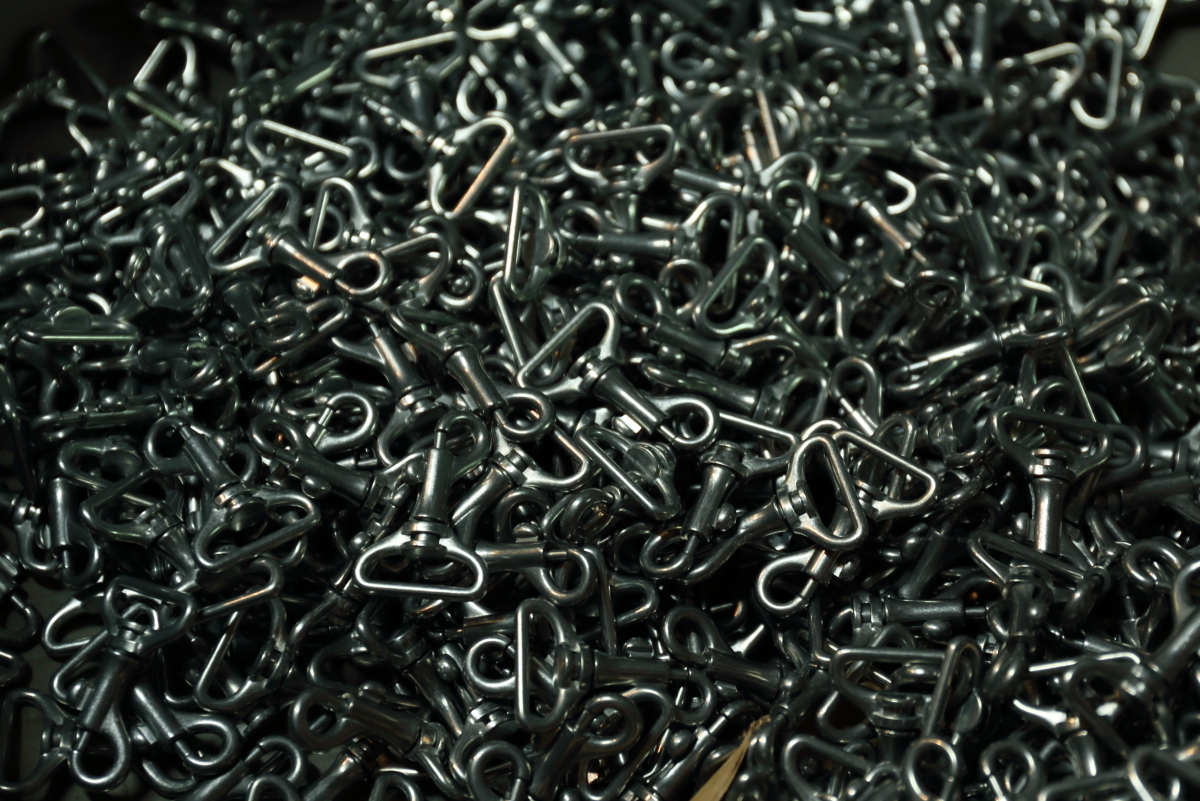 また、思いついたアイデアをすぐ形にできるのも利点だ。たとえば、ナスカンの一部には内側に押し込めるバーを反発させるため、外に穴を開けハトメを入れてバネを搭載させるものがある。しかし別府鋳工は、ハトメを入れずにバネを内部に搭載させることに成功。これまで以上に見栄えのよいナスカンを誕生させた。2010年には特許を取得している。