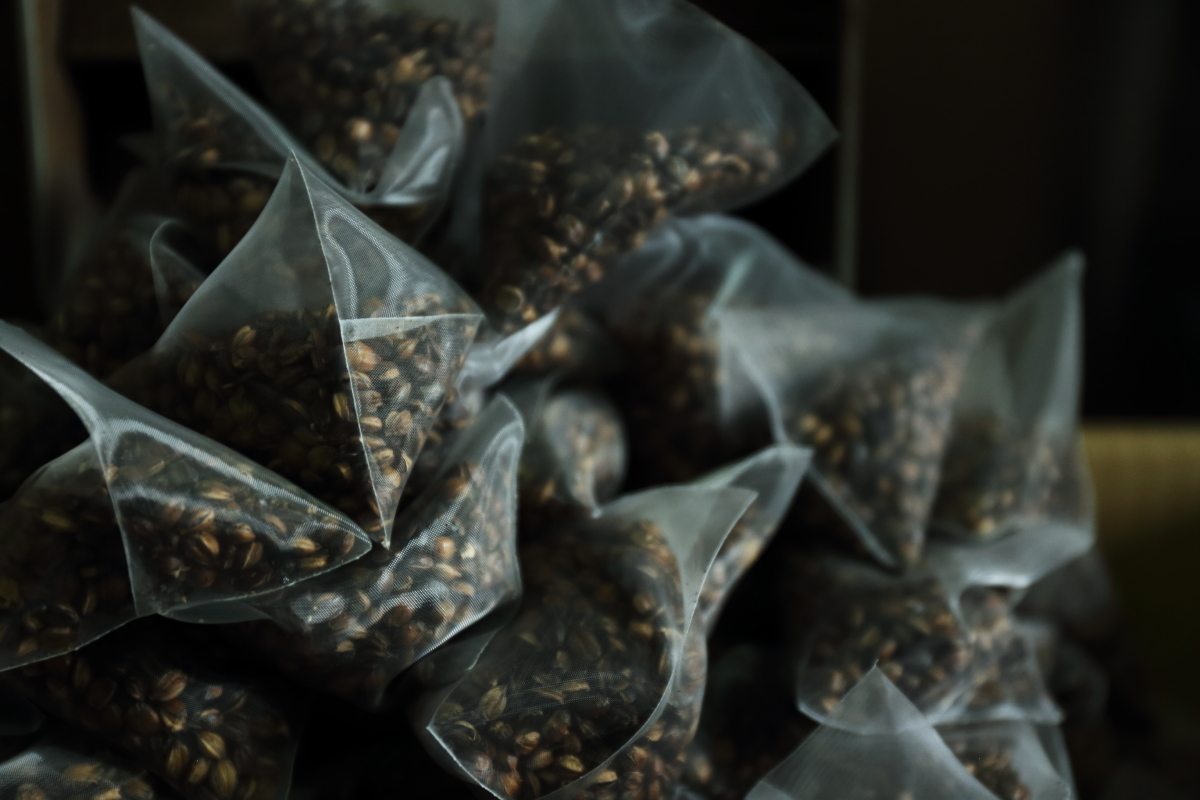 主力商品が、粒を砕かずに六条大麦そのままの形を残した「つぶまる」だ。三角パックによって麦茶本来の味と香りを抽出できるのが特徴で、雑味も出にくく、手軽な水出しパックに比べると香ばしさは60%増、うまみは17%増、香りは3倍増のデータもあるという。