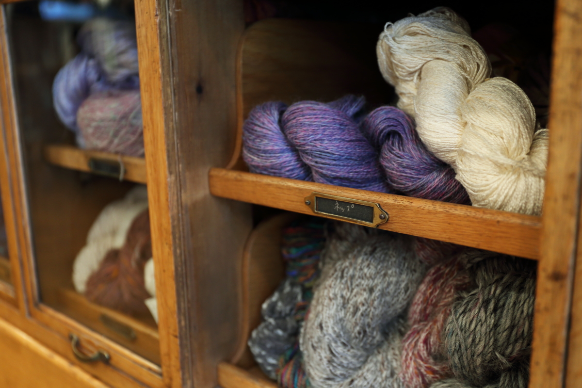 「昔から糸屋さんがひしめく土地でしてね。このカフェは、愛好家の方々がゆったり編み物を楽しんだり、交流を深めるために設けたんです」