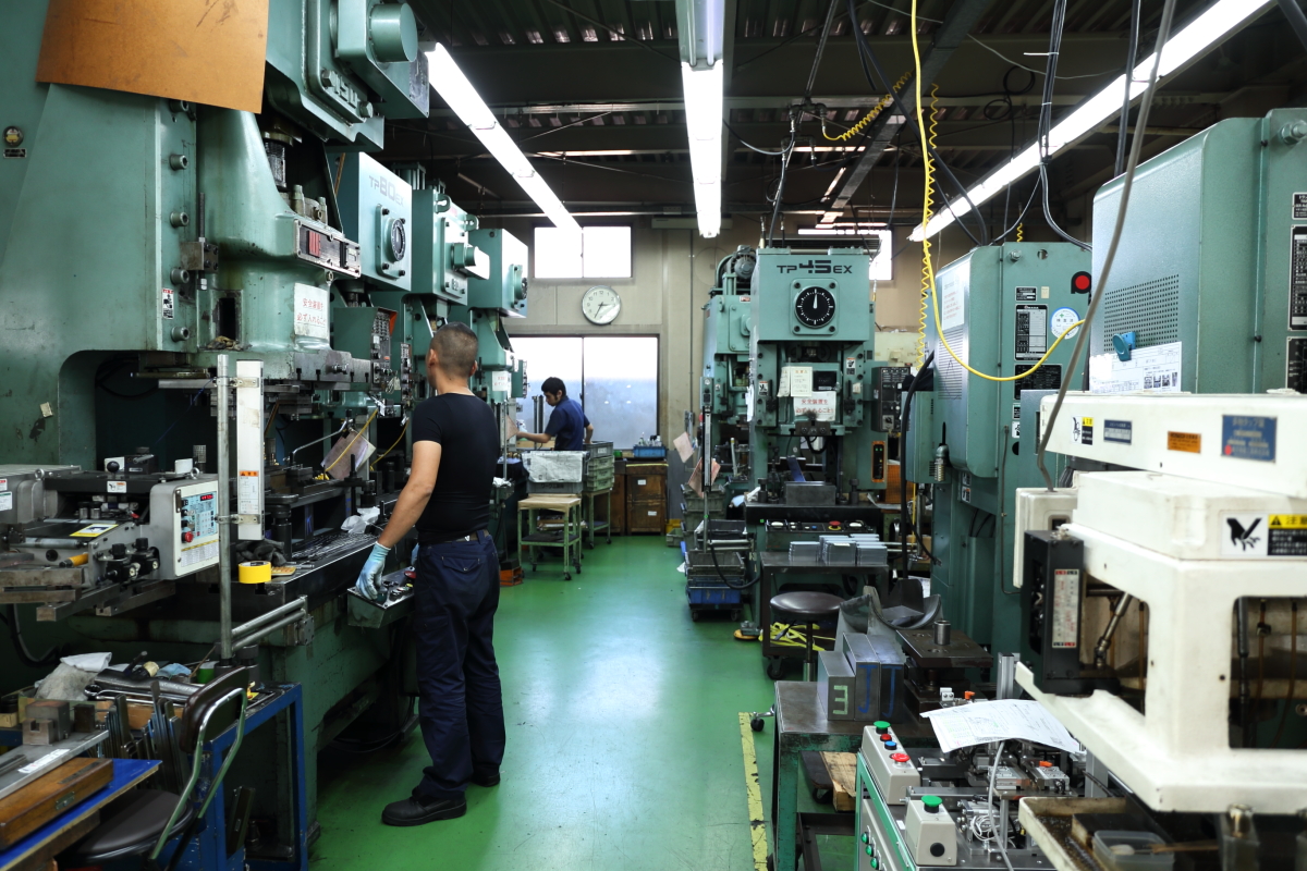 細かな路地が入り組んだ下町・足立区関原。とある袋小路の先にあるがザオー工業の社屋だ。400坪もの広大な敷地に事務所やプレス工場、金型・資材置場といった複数の棟が建てられており、それぞれから響く作業音が独特のハーモニーを奏でていた。