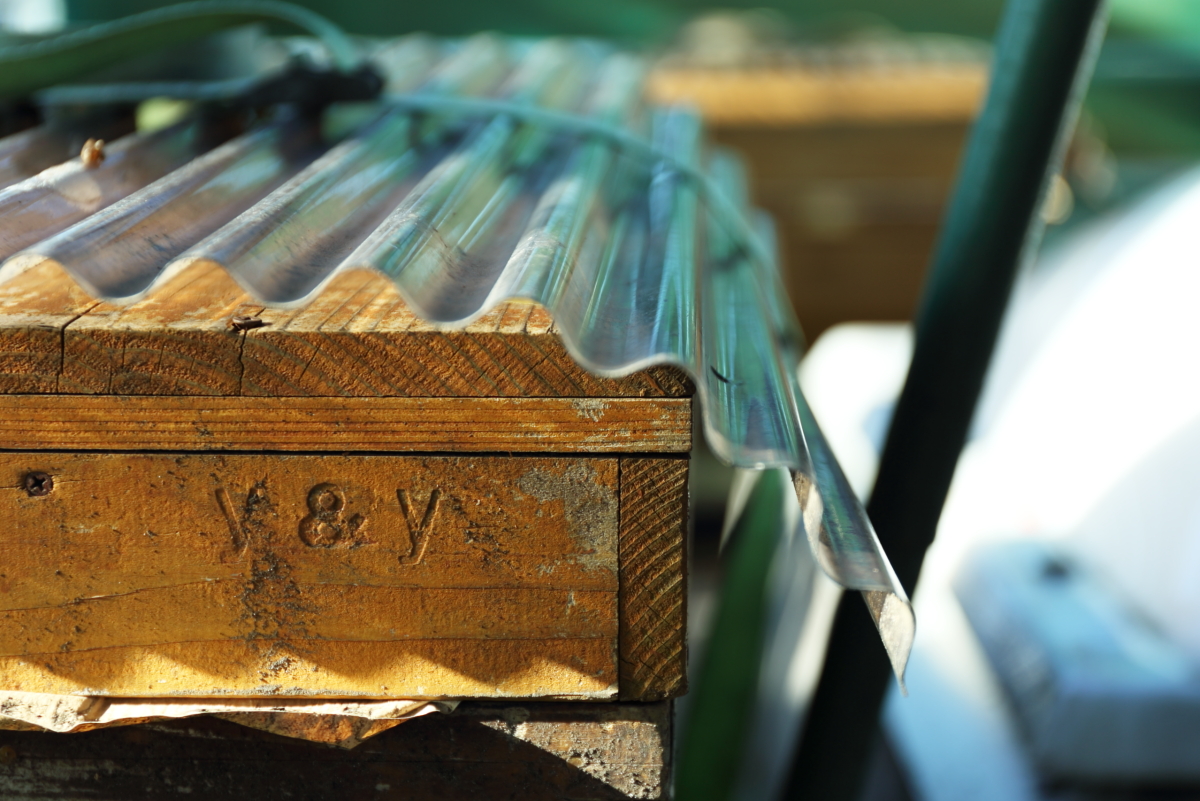 鈴木さんに案内されたのは、本社兼住居でもある2階建ての建物の屋上スペース。一角に4~5個の木箱があり、周辺に小さなミツバチが行き交っていた。