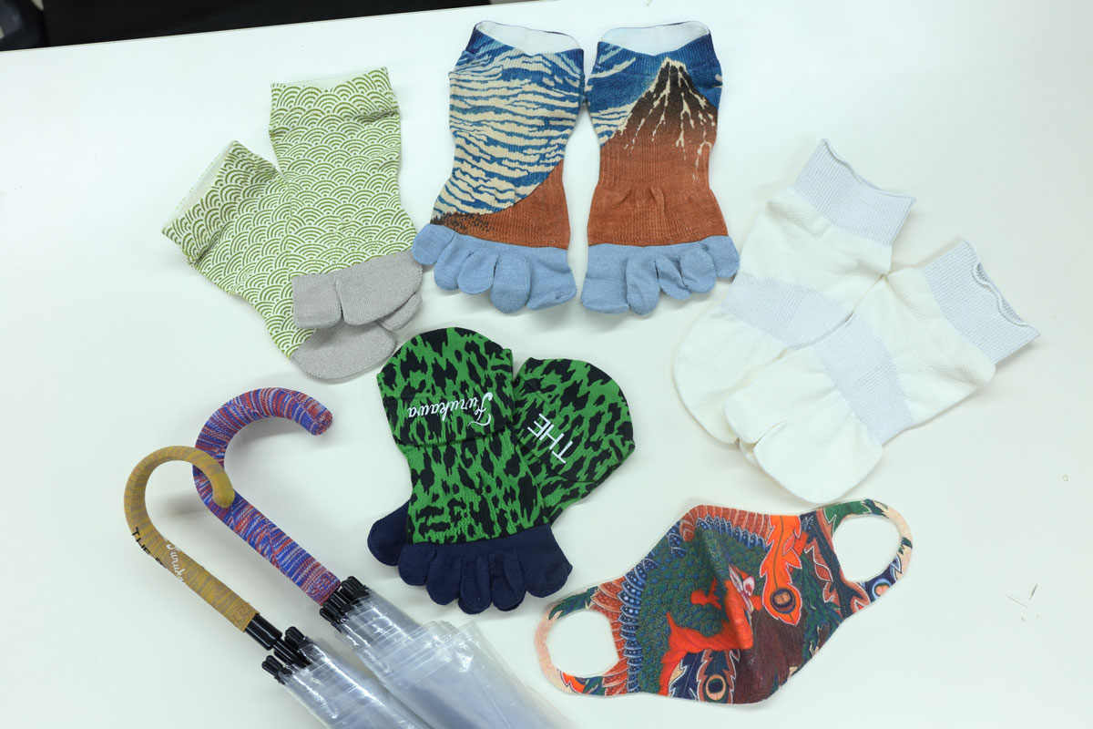 新型コロナウイルスの渦中にあったときは、和紙でマスクを製造。大きな飛沫の拡散を防ぐとともに、肌触りのよさでファンを獲得した。和紙素材による編み込み技術を高めた後は、5本指の靴下を製造。インクジェットで高精細な和柄も表現し、国内外の消費者の興味を喚起した。最近では、横編み附属を製造する際に生じる糸の切れ端を再利用して、ビニール傘の持ち手に取り付けるカバーを開発。無駄をなくすというサステナブルな意識を反映させたモノヅクリで、各所から好感触を得ているという。