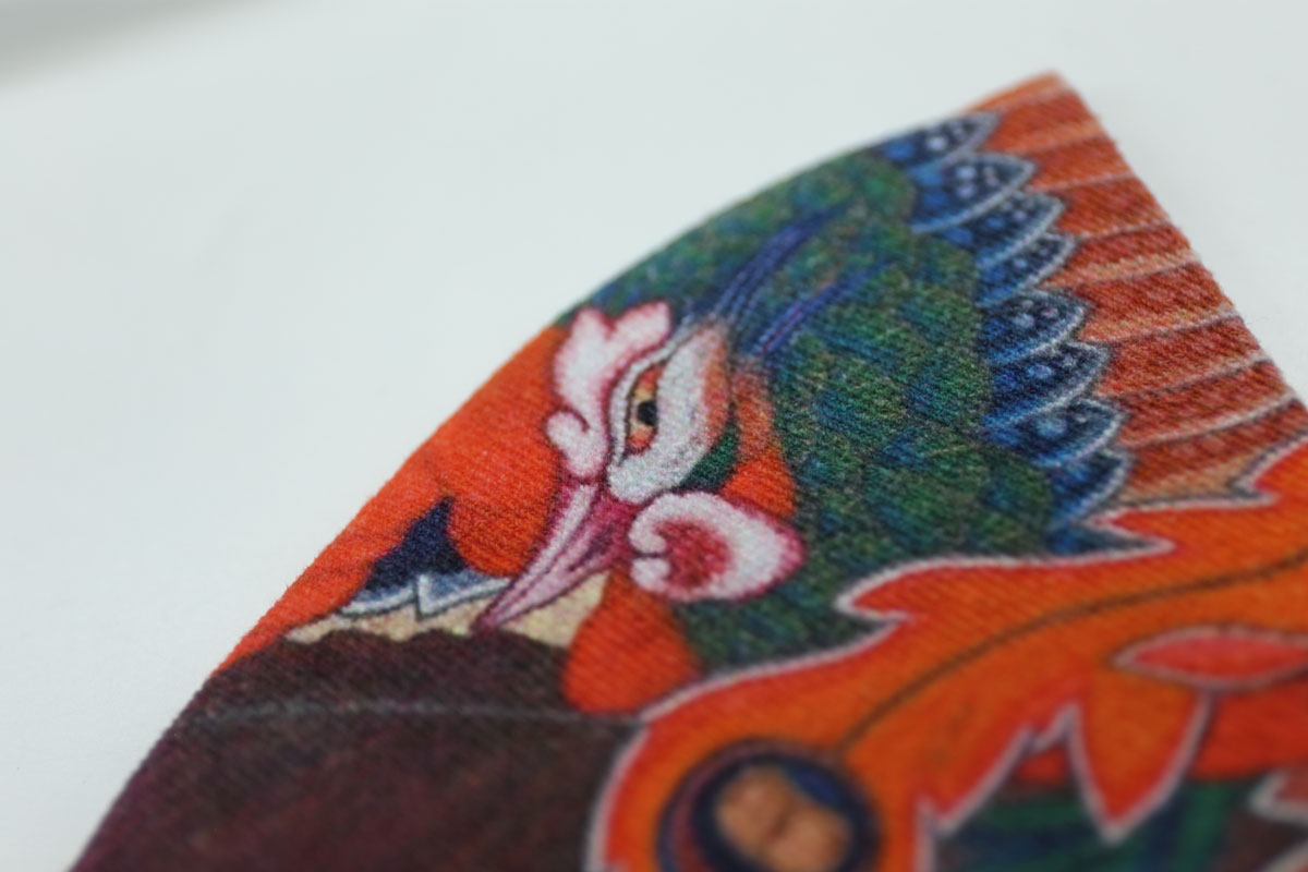 「当社が導入しているインクジェットは、おそらく東京ではうちにしかない設備です。極端にいえば、糸さえあれば高精細に染色した服飾小物を受注したその日のうちに完成させられるんです」