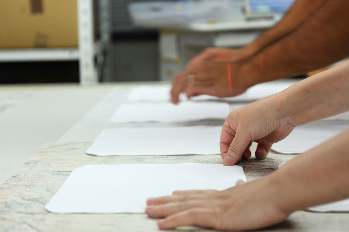 およそ30年前と比べると、アパレルメーカーから受ける1製品あたりの注文数は1/10ほどに落ち込んでいるという古川さん。製造ロット数の低下が定着した半面、アパレルメーカーではない顧客からの依頼が増えているという。