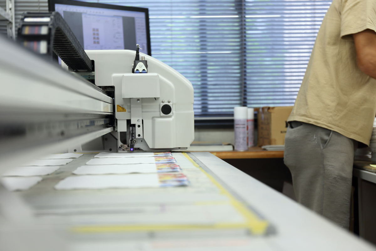 起業は1958年。工業用ミシンの販売修理業を営んだ後、横編み附属(ニットリブ)製造業を営んでいた古川さんの父が会社を興した。1995年に二代目を継ぐと、1997年にインクジェットプリンターを他社に先駆けて導入。2000年代初頭にはミシンを使った縫製業務をビジネスパートナーに移譲し、経営に改革をもたらしていった。