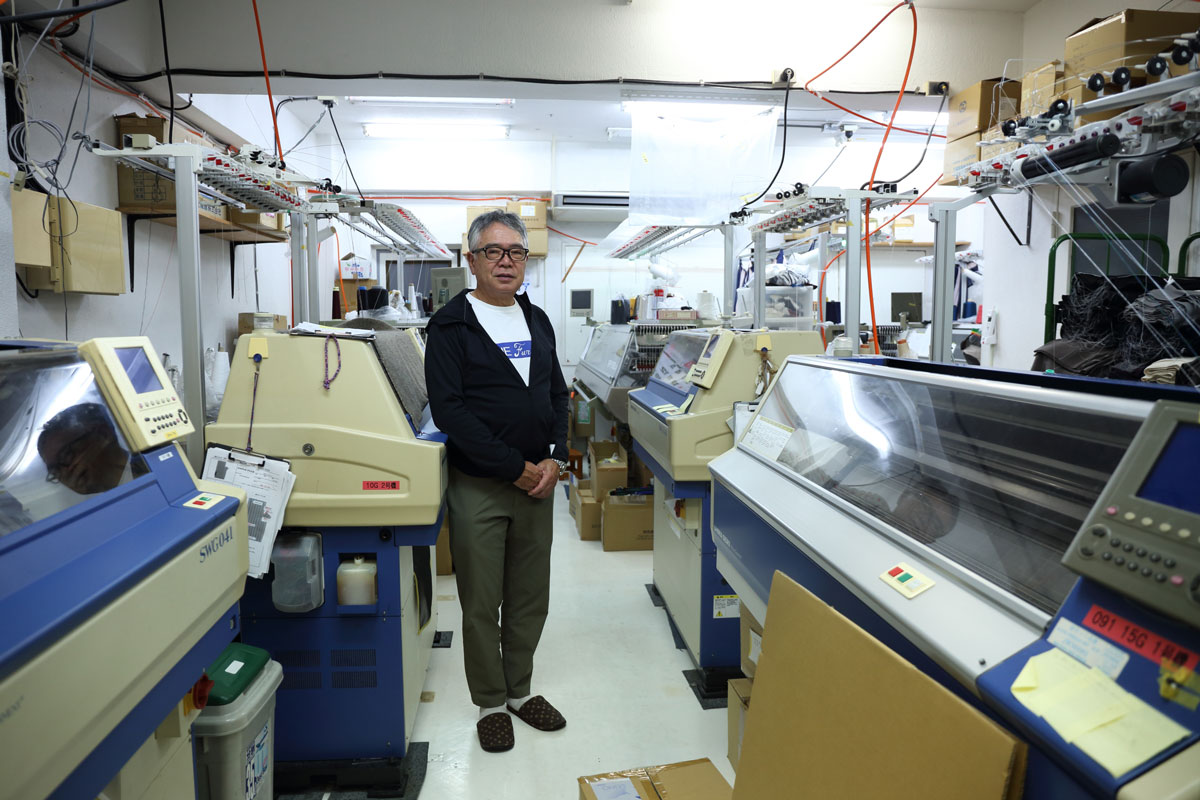 「1990年代当時はポロシャツの襟など、月に20万枚くらい横編み附属のオーダーが入っていました。しかし、だんだんと韓国製や中国製の安価な衣料品が大量に輸入されはじめ、国内製造の需要が下がってきました。“選択と集中”をすべきだということで、利幅が大きな横編み附属製造を残し、ミシンによる縫製業のほうは担当者に事業を丸々移譲したんです。2003年に新社屋を建てたころには、そうした新体制ができ上がっていました」