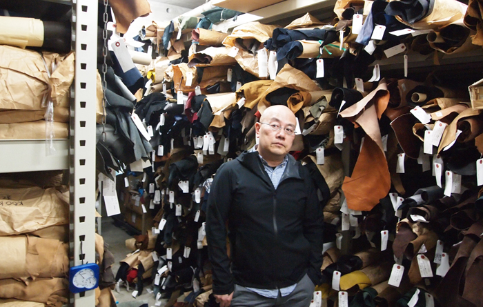 「革は比較的小さな産業で、産地といえば東京の東の方と関西の姫路くらいしかもう残っていないんですよ。もともと浅草の方が地場産業として靴を作っている商店が多く、その近隣ということでこの辺りは革問屋が多いんです。羊の革やヤギの革だったりね。