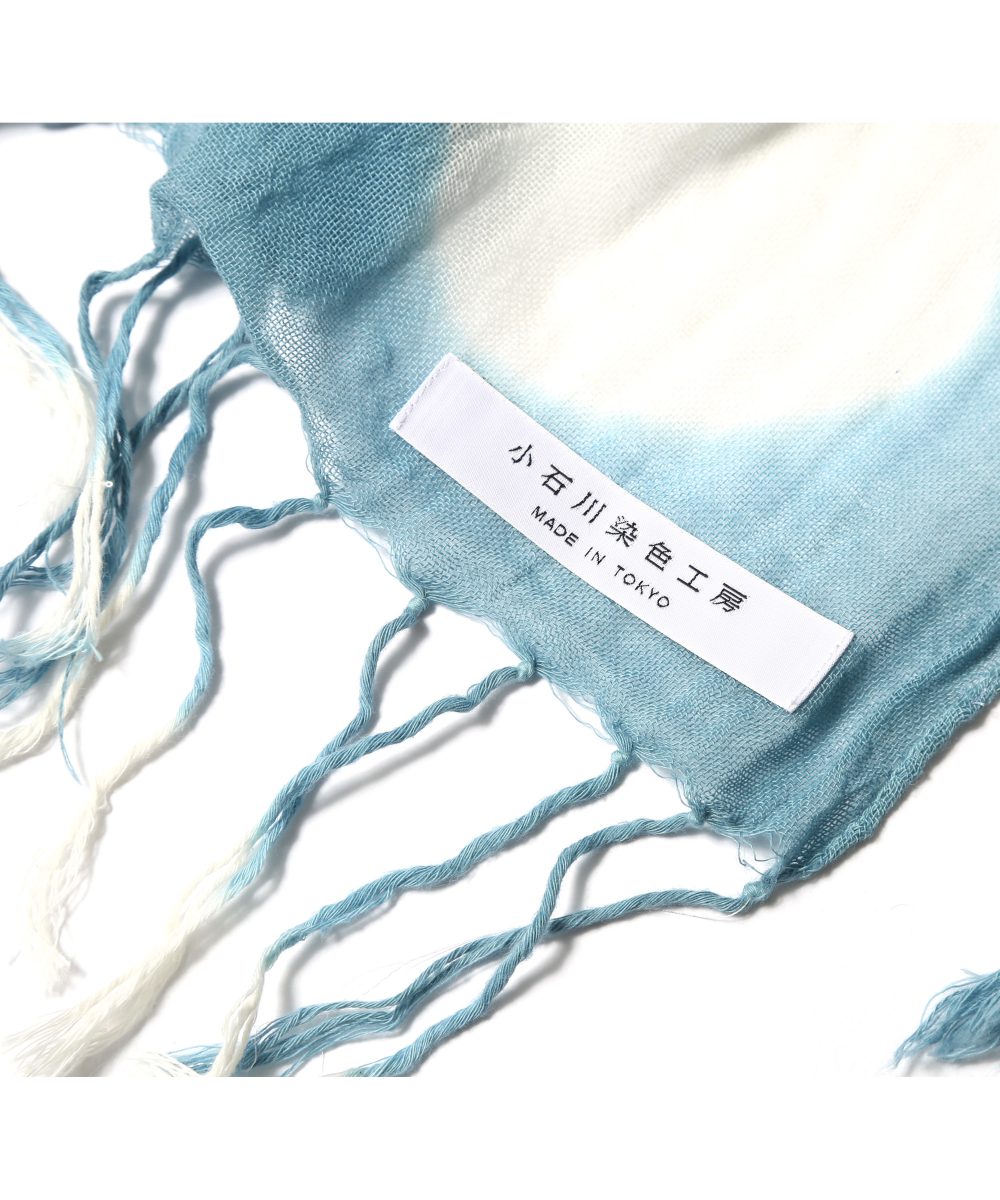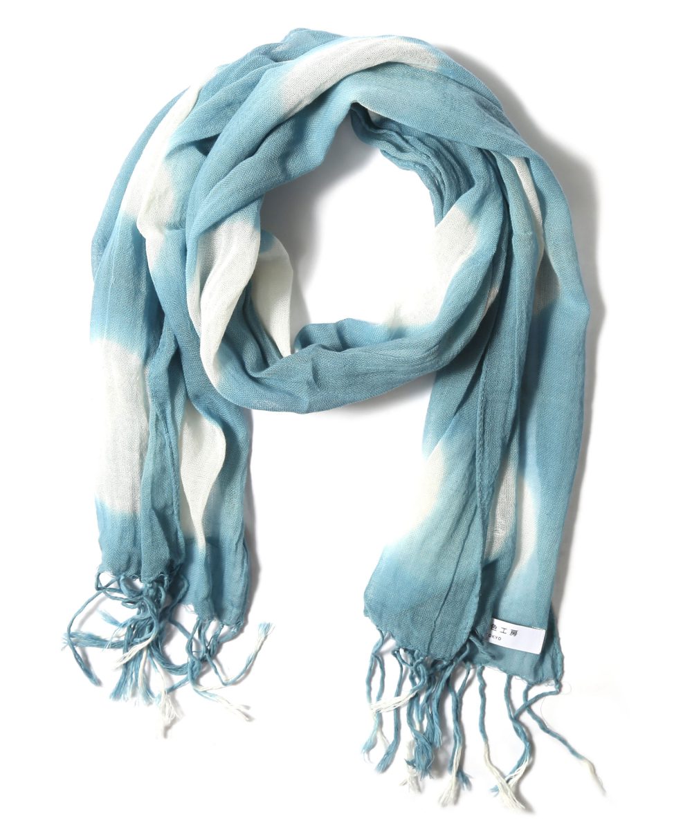 古くは奈良時代から伝わる伝統的な染色技法の一つ、一枚一枚丁寧に布地をたたんでから部分的に板で挟んで染める「板締染め」の技法で、ストールを制作。上野桜木あたりで開催されたイベント用の記念カラーの商品です。