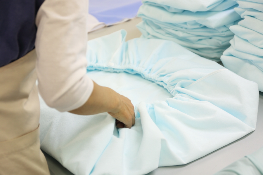 たとえば縫い合わせ部分に大きな段差がある服の場合、日常生活においては気にならずとも、四六時中横になっている新生児や要介護者にとっては痛みや床ずれを生む原因になりえるため、こうしたリスクを取り除かなくてはならない。採用する素材も、弱い肌を傷つけないような精細さが求められる一方、洋服をつかんで体を移動させることもあるので耐久性も必要だ。