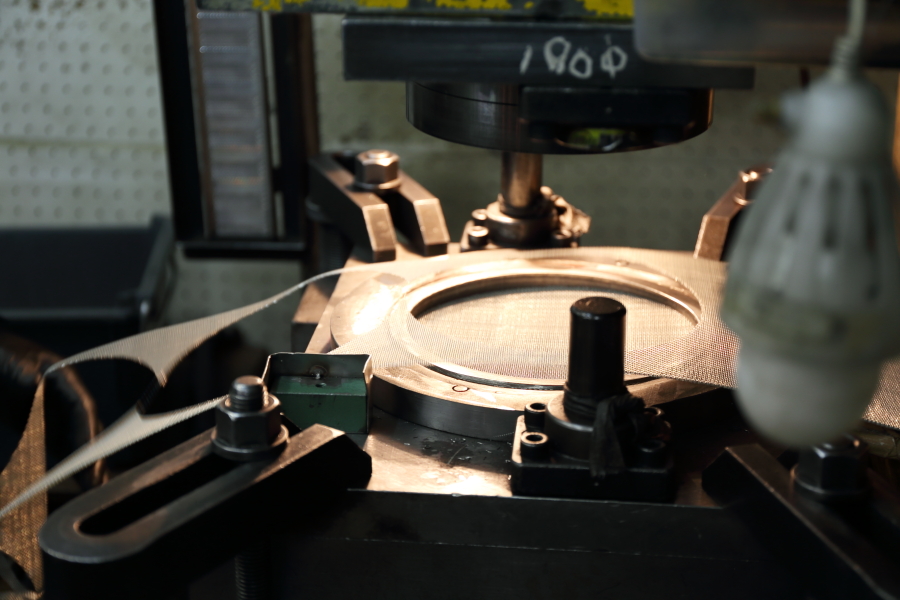 事業のメインとなっているのが押出機用フィルターの製造だ。押出機とは、さまざまな媒体を圧縮し、金型の開口部に通して押し出す工業用機械のこと。プラスチックや化学繊維などの成形に用いられるもので、フィルターとして精密な金網が必要になる。高品質な金網を提供する、石川金網の実力を発揮できる分野だ。