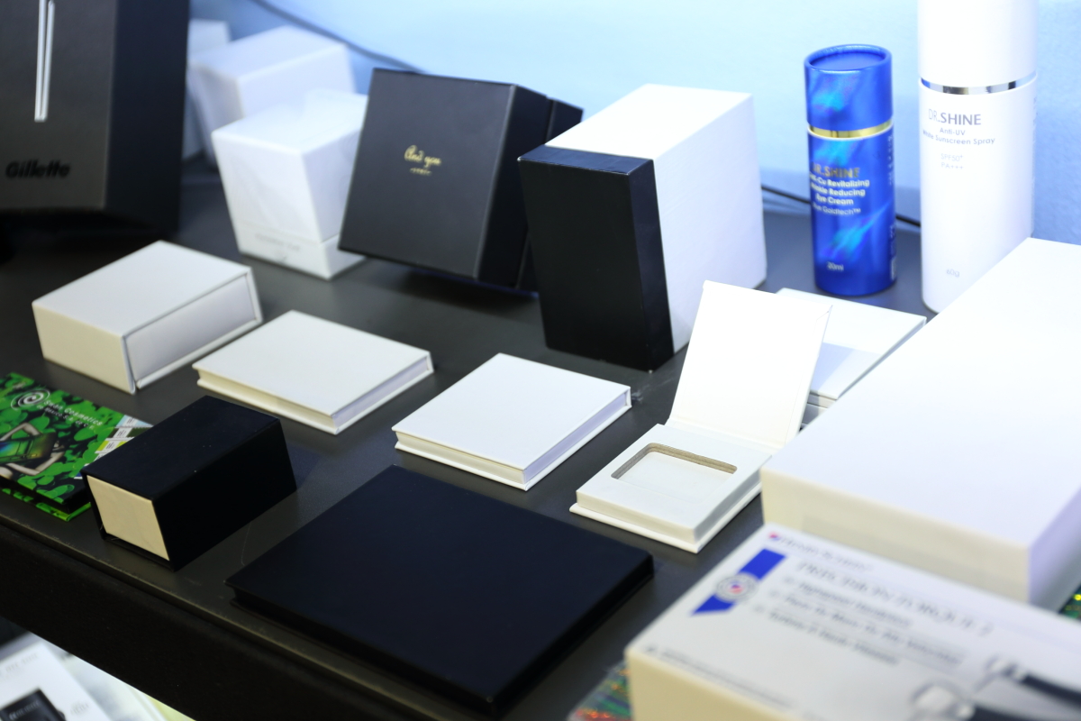 クライアントの希望に応じてパッケージの材質や加飾方法、加工の仕方をアレンジ。納期によっては日本国内の貼箱メーカーへの外注も含め、最良のソリューションを提供するようにしている。